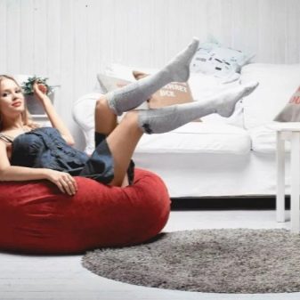 Terdapat juga kerusi tanpa lukisan untuk dijual. Oleh itu, mereka sangat selesa, dengan permintaan yang tinggi. Model sedemikian mudah mengambil bentuk tubuh manusia. Benar, perabot sedemikian mungkin tidak mudah jika orang tua menggunakannya. Adalah penting untuk memilih kerusi tanpa kerangka sesuai dengan pertumbuhan seseorang.