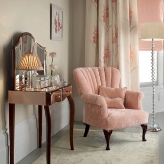 - Gaya dan warna. Kerusi itu hendaklah dibuat dalam gaya yang sama dengan keseluruhan bilik tidur. Warna-warna perabot perlu bertindih dengan seluruh sisik di pedalaman. Kerusi itu tidak boleh diketepikan dari ensemble umum.