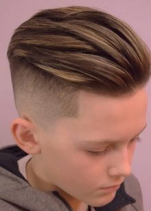 Pilihan pemetik sesuai dengan lelaki dengan kepala yang besar. Gunting rambut seperti ini menjadikan bentuk tengkorak lebih kecil. Di rantau parietal, rambut dipotong di bawah kawasan rata. Jika kanak-kanak mempunyai wajah yang luas, maka taman bermain lebih panjang, dan jika kurus, maka lebih pendek. Wiski dan nape dicukur sekejap mungkin. Sudut di antara kawasan temporal, occipital dan parietal adalah lembut dan bulat. Stylists tidak mencadangkan potongan rambut jika rambut jarang dan lembut. Keutamaan diberikan kepada rambut tebal dan sengit, terima kasih di mana anda boleh membentuk kawasan yang dikehendaki untuk memotong.