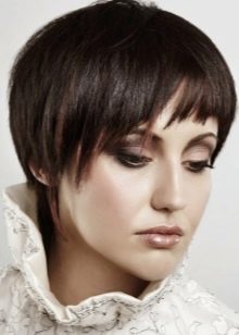 Di kaki - ini adalah rambut potongan terbaik untuk wanita kecil, kelihatan lebih berfaedah pada rambut halus, lurus dan agak tebal. Sebagai peraturan, tuan sangat memotong bahagian belakang kepala, supaya lata volumetrik di bahagian atas kepala menyerupai kepala cendawan, dan belakang kepala seperti kaki.