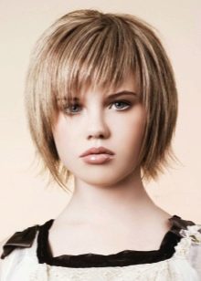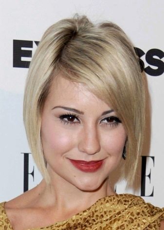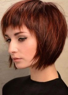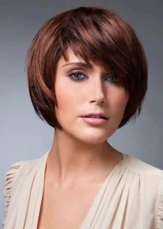 - patuh lembut - kacang yang dipendekkan dengan poni beveled akan sesuai di sini, dan ia adalah dinasihatkan untuk memotong keriting dengan kaedah pelapisan, supaya anda boleh mencapai jumlah yang dikehendaki pada cuping pita dan temporal;