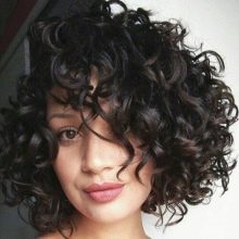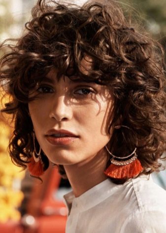 The bangs pada keriting sangat keriting tidak boleh dibuat terlalu pendek, jika tidak, gaya rambut akan kelihatan lebih buruk dan sesuai dengan buruk.