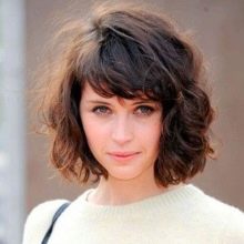 Potongan rambut yang bergaya dan bergaya untuk rambut pendek beralun sentiasa kelihatan hebat. Selepas mencuci, pemilik curls hanya perlu mengeringkannya dan melukis sikat melalui mereka.