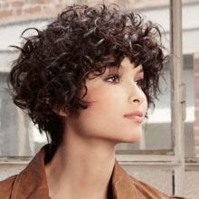 Wanita dengan keriting pendek boleh memberi perhatian kepada pilihan yang paling bergaya dan berjaya untuk potongan rambut.