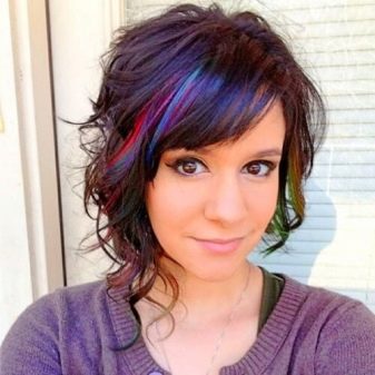 Kelihatan baik pada rambut kerinting menonjolkan beberapa kunci. Tidak kurang menariknya adalah pewarna rambut tebal dalam nada yang berbeza dengan peralihan yang lancar di antara mereka.