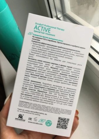 Serum terapeutik Active Occuba boleh didapati di ampul. Komposisi ini adalah penyelesaian homogen di mana terdapat kepekatan nutrien yang tinggi. Menembusi mentol dan "inti" rambut, mereka mula memulihkan strukturnya dan "mengaduk" folikel tidur, memulakan proses mengaktifkan pertumbuhan rambut baru.