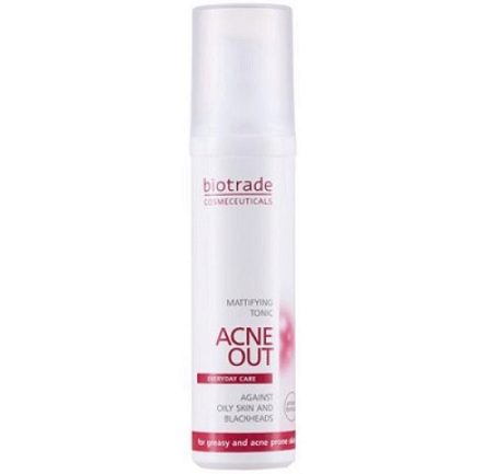 - Biotrade Acne Out Mattifying Tonic. Produk berkualiti tinggi tanpa alkohol dan paraben tidak mencetuskan alergi, melembutkan, melembapkan, dan merangsang pertumbuhan semula tanpa kesan sampingan. Apabila jerawat berlaku, pengeluar mengesyorkan menggabungkan penggunaan tonik dengan sabun siri yang sama.