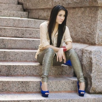 Kasut biru suede berada dalam permintaan yang tinggi pada musim baru. Mereka kelihatan mahal dan bergaya, jadi mereka membolehkan anda membuat busur yang bergaya dan menarik.