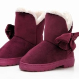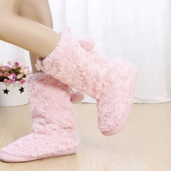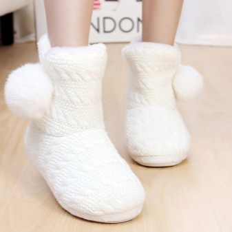 Kadang-kadang anda boleh mencari kasut dengan pompons, yang dihiasi dengan busur. Hiasan tambahan memberikan but lebih lembut dan daya tarikan.