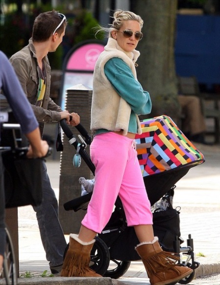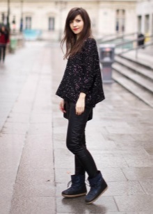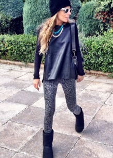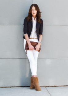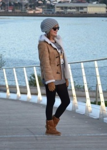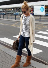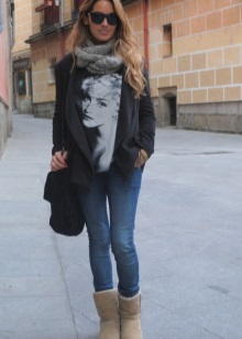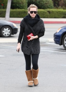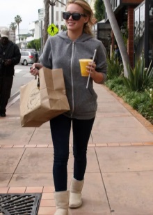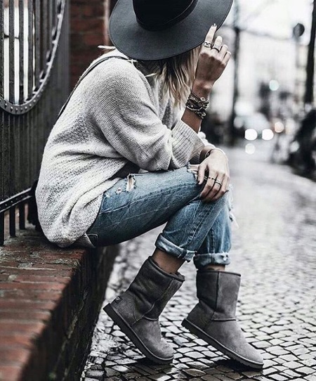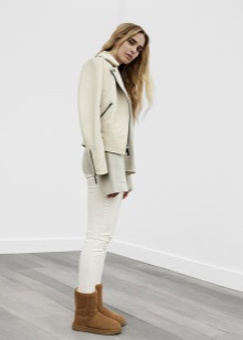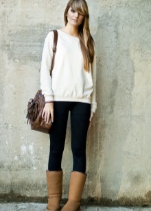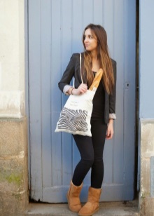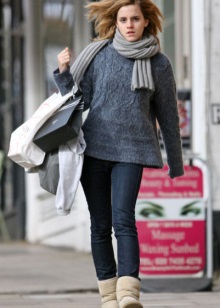 - Pakai ugg dengan pakaian kasual atau sporty. Ia boleh menjadi jins, jogging, legging. Dalam ugg dan celana, meretas ke bahagian bawah, anda akan berasa selesa dalam apa jua keadaan.
