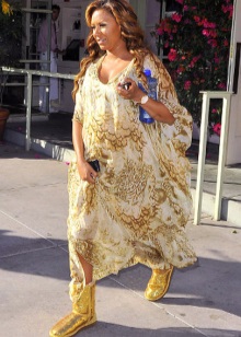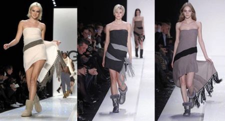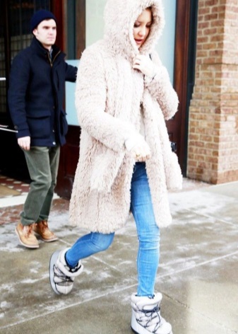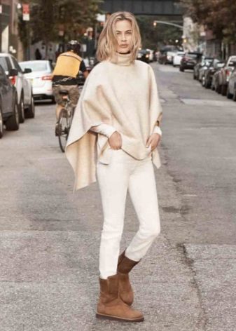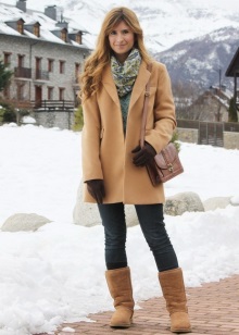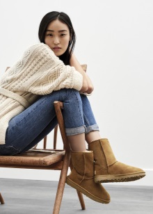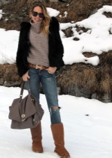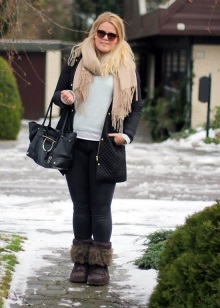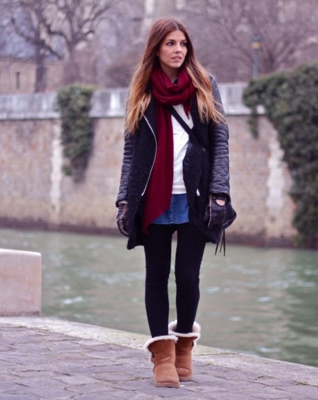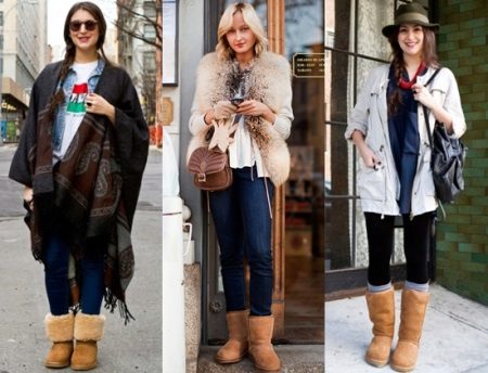 Sebelum ini, ia tidak mudah untuk memilih pakaian dalam di dalamnya, tetapi kini uggs dipakai dengan parkas, kot bulu, jaket dan baju bawah, jadi anda tidak akan menghadapi masalah dengan imej itu.