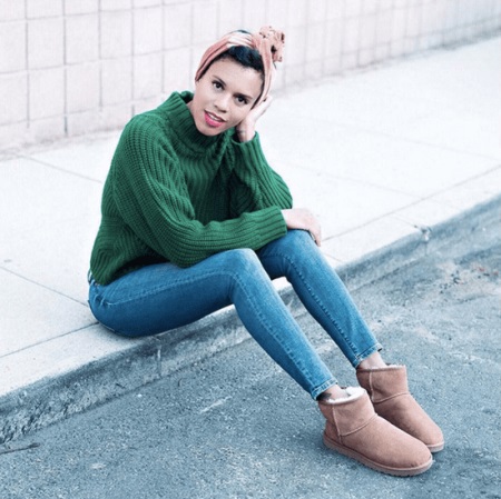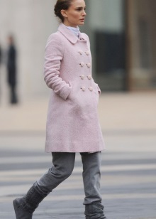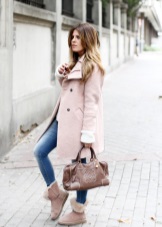 - Natalie Portman menunjukkan bahawa ugg boots boleh kelihatan hebat dengan mantel pink feminin. Pakai dengan jaket turtleneck putih dan kelabu, melengkapkan pandangan dengan ugg dengan bootleg dirajut.