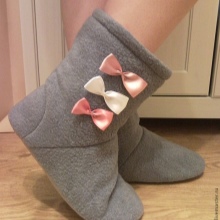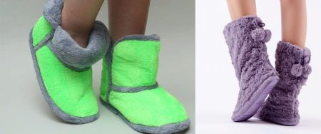 Butang Ugg adalah pengganti yang sesuai untuk selipar, kerana mereka lembut, ringan dan hangat. Kedua-dua model kulit dan rajutan dengan hiasan comel sesuai untuk rumah. Butang ugg dalaman boleh dihiasi dengan pompons, busur dan elemen lain. Terutama mereka akan sesuai di rumah negara, kerana di dalamnya anda tidak boleh hanya berjalan di dalam rumah, tetapi juga keluar ke jalan.
