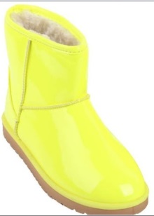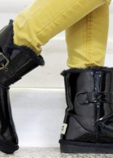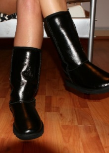 Secara berasingan, adalah penting menonjolkan penyembunyian kalis air yang boleh dipakai dalam cuaca panas. Ini adalah varnish ugg yang telah memperoleh sifat penghilang air dengan rawatan khas kulit.Salutan metallized khas digunakan pada mereka, yang tidak hanya menghalangi basah, tetapi juga memberikan sepatu penampilan yang menarik. Kasut kulit paten sesuai untuk dipakai setiap hari dalam musim sejuk yang tidak dapat diramalkan.