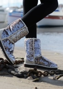 Bagi mereka yang terbiasa selalu menjadi tumpuan dan tidak takut untuk menunjukkan keperibadian mereka, pereka menawarkan ugg yang cemerlang, yang kini berada di puncak populariti. Anda boleh memilih warna perak, emas atau metalik.