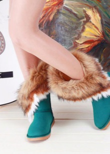 Jika but bot klasik kelihatan terlalu membosankan kepada anda, anda boleh memberi perhatian kepada model reka bentuk. Boots dalam warna-warna cerah, disembur, dihiasi dengan batu Swarovski yang besar. Ugg buatan tangan yang luar biasa ini akan merayu kepada fesyen yang paling menuntut.