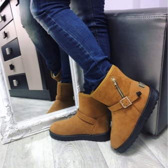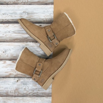 Jaket percubaan mengilhami penciptaan model dengan tali pereka - terang, bergaya dan kejam.Butang ugg ini menyerupai kasut gaya biker, tetapi pada masa yang sama tetap selesa dan lembut, tidak seperti sepatu motosikal berat. Mereka kelihatan baik dengan parka, jaket pengebom, jaket dan pakaian sukan lain.