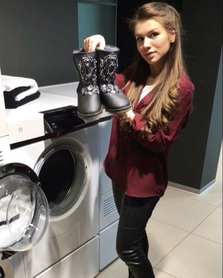 Butang ugg klasik dilarang sama sekali untuk dibasuh dalam mesin automatik, dan selepas itu mereka hanya perlu dibuang. Tetapi jika anda memakai baju rajutan, mereka akan memindahkan basuh dengan mudah.