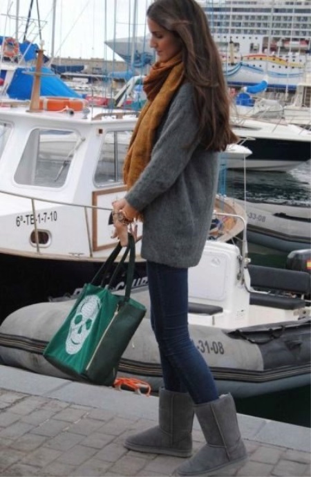 - Uggs membuat kaki lebih anggun - walaupun secara kebetulan mereka kelihatan agak tidak bersuap, sock panjang memanjangkan angka, membuat kaki kelihatan lebih langsing.