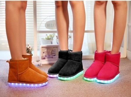 Butang ugg yang luar biasa untuk pelajar dengan satu tangan bercahaya adalah popular. Dalam satu pasang mungkin terdapat sehingga 8 mod lampu latar, warna yang boleh diubah mengikut mood. Butang bercahaya tidak sesuai untuk sekolah, tetapi di dalamnya anda boleh pergi berjalan-jalan dengan kawan-kawan, di mana kanak-kanak akan menjadi tumpuan.
