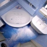 Menghadapi bahan-bahan di bilik mandi mungkin berbeza. Untuk jantina, ini paling kerap jubin dan jubin porselin, serta linoleum. Ia mudah dipasang, tidak memerlukan banyak usaha dan masa. Seseorang lebih suka menghiasi lantai dengan bantuan lantai sendiri, kadang kala lamina dipilih sebagai lapisan.