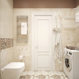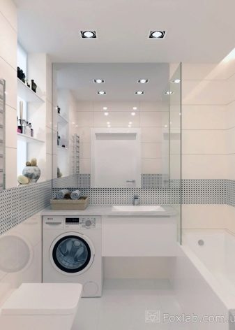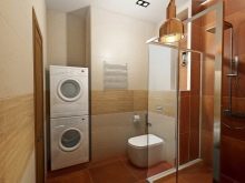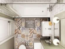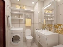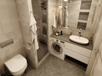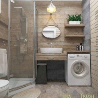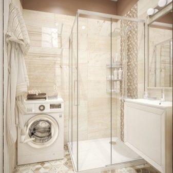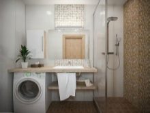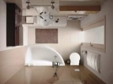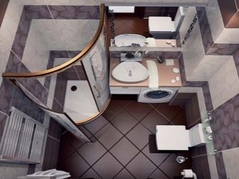 Bahawa projek itu tidak hancur oleh penempatan yang salah dari mesin basuh, perabot dan perkakas kebersihan, adalah perlu untuk membina bentuk bilik dan lokasi komunikasi. Sebagai contoh, pancuran boleh terletak di hadapan pintu depan, tandas boleh berada di sebelah, sinki boleh di sebelahnya, dan mesin basuh boleh didapati di bawahnya. Susunan perkara ini akan membebaskan ruang untuk bergerak di sekitar bilik.