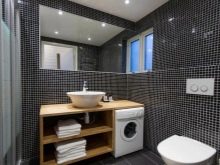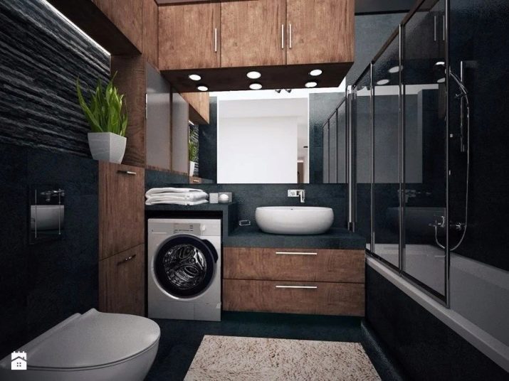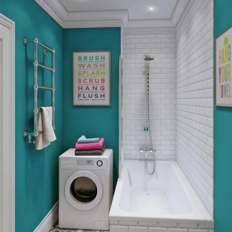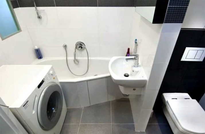 Kadang-kadang komunikasi terletak di sedemikian rupa sehingga bilik mandi perlu dipasang di sepanjang dinding di belakang pintu, manakala basuh pinggan terletak di seberang pintu, tandas praktikal di sudut. Oleh itu, tempat untuk kereta kekal di dinding ketiga.