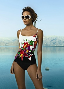 De meeste badkleding is gemaakt van dikke stof met een sleepeffect. Het is ook de moeite waard eraan te denken dat donkere tinten visueel iets meer slank zijn dan helder en licht, u kunt zich hierdoor laten leiden bij het kiezen.