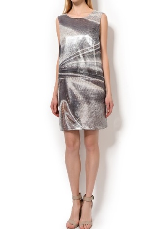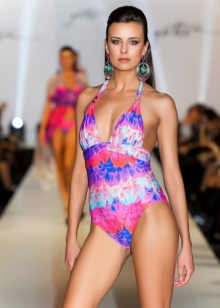 Het is ook onmogelijk om een heerlijke combinatie van een chique, glanzende avondjurk niet te onderscheiden van bijna honderd procent zijde en hetzelfde stralende aparte badpak dat abstractie en verfijning van kleuren herhaalt.
