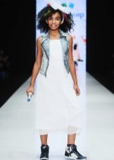 Het meisje draagt deze originele schoenen misschien wel met een jurk. Het is beter om producten met een eenvoudige snit te kiezen: strak gebreide modellen in een sportieve stijl, overhemden en jurkoverhemden, vrouwelijke producten van chiffon. Het kan een recht, passend of trapeziumvormig silhouet zijn.