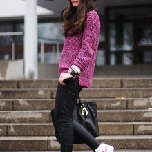 De jonge fashionista ziet er vrouwelijker uit in sneakers, zelfs als ze een trainingspak draagt. Over het algemeen wordt dit ding op unieke wijze met succes gecombineerd met zowel broeken als jurken.