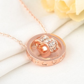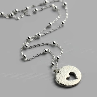For en jente ville det beste alternativet være et lite lakonisk hjerte med en spredning av små rullesteiner. Kvinner har råd til et mer spektakulært anheng med en stor perle i sentrum, omgitt av en spredning av små steiner.