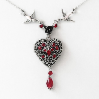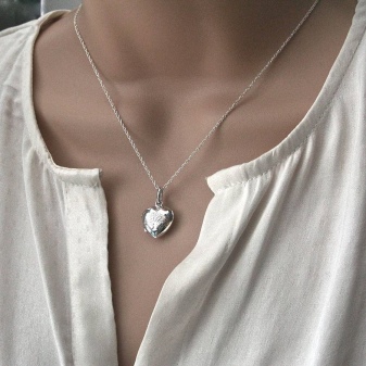 Hjerteformet anheng er perfekt for ethvert romantisk utseende. Det kan være en luftig kjole, en rufflebluse, en topp i linstil. Det er viktig at det ikke er noen dissonans mellom klesstilen og smykkene du velger. Ellers er det ingen begrensninger.