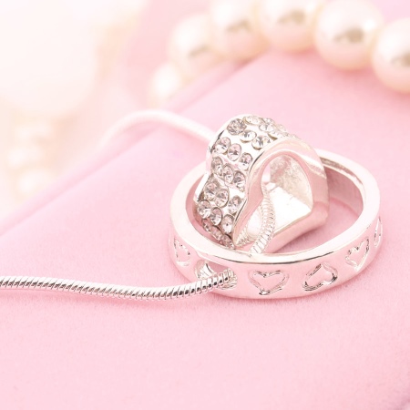 Nyhet i smykkemote - Ringhjertet anheng, smykker med en uvanlig og stilig design. Når du opprettet anhenget, ble moderne trender tatt med i betraktningen, denne dekorasjonen ser original ut, men delikat og sofistikert.