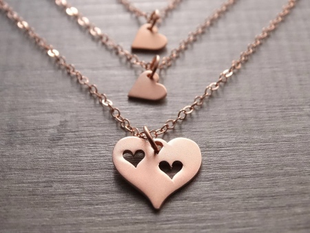 I dag er det fasjonabelt å ha tynne kjeder i flere rader, hver av dem kan ha et hjerte anheng. Det er viktig at de er de samme, da vil smykkene se ut som et helt ensemble.