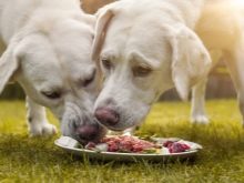 Den voksne labradoren skal mates samtidig.