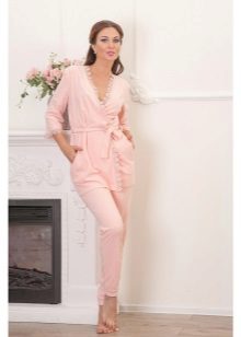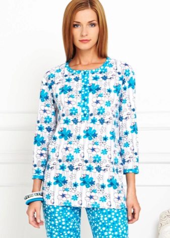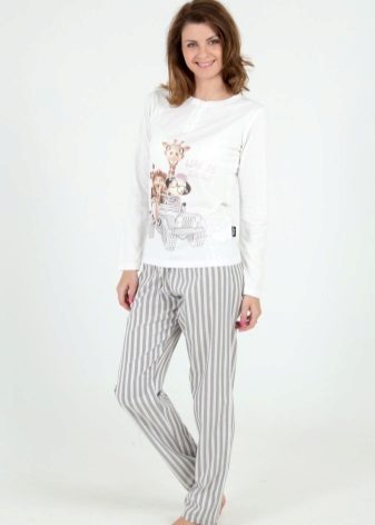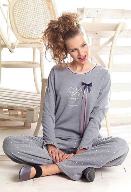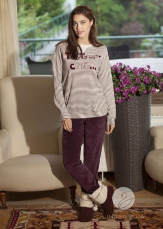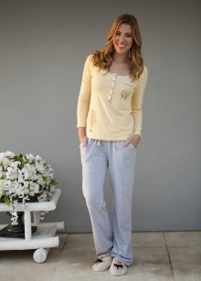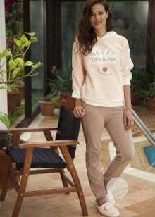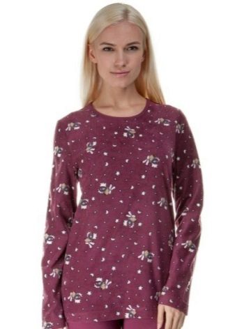 I tillegg kan en genser fra slike pyjamas bæres hjemme som et element i yttertøy, og kombinere den med en tynn T-skjorte eller t-skjorte.