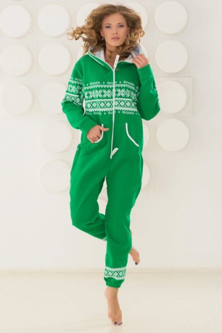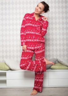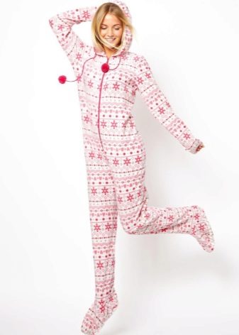 Modellen av vinterpyjamas er ikke bare laget av veldig tett varmt stoff, men har også et trykk som er karakteristisk for denne tiden av året, så vel som for nyttårsferien.