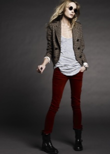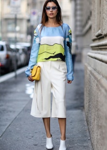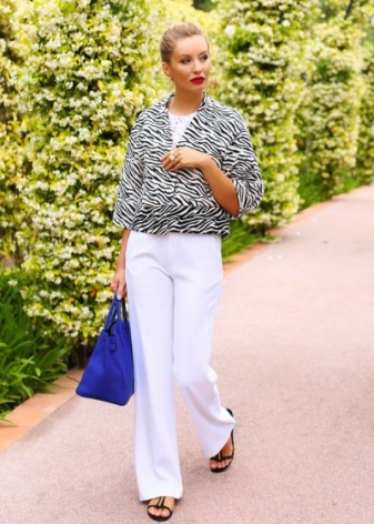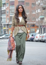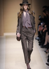 Denne stilen involverer bukser med rett kutt, lett bluss er mulig. Tre kvart bukser er også aktuelle.