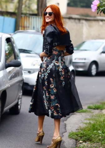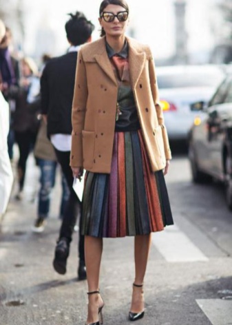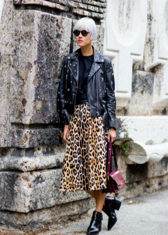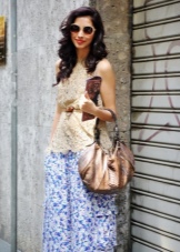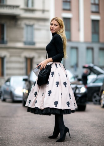 Trykk er rolige: striper, celler, geometriske mønstre. I baugen er bare en ting med et trykk mulig, for eksempel et vakkert skjørt med et ornament. Blusen i dette tilfellet er utelukkende monofonisk.