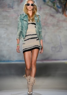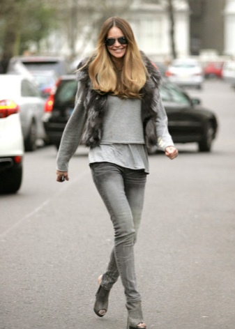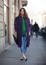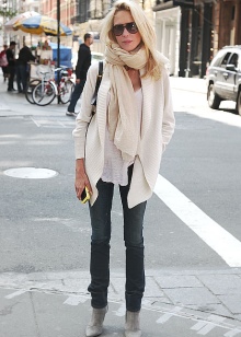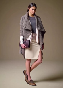 I kjølig vær er cardigans og varme gensere passende. Modeller velger vanlig. Lengden varierer, snittet er enkelt, med en karakteristisk mangel på dekorative elementer. Som tillegg brukes naturlige pelskrage. Det mest passende her vil være dyre lærskinn eller semsket skinn.