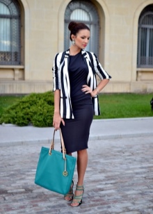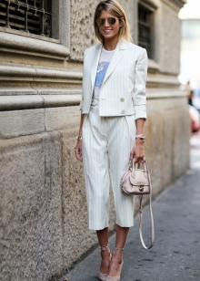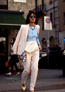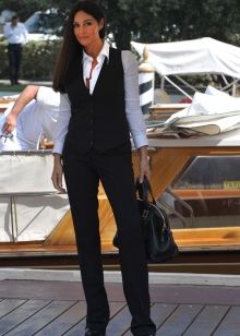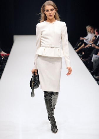 Kostymer og bukser, og med et skjørt, ofte understreker midjen, ser veldig feminin ut. Bildet vil bli komplementert med pumper med lave hæler opp til 5 cm.