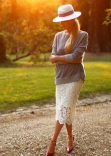 Når det gjelder skjørt, er klassikeren av sjangeren et spalt blyantskjørt. Skjørt av mørke toner er godt kombinert med bluser i samme farge eller emner med delikate lyse nyanser.