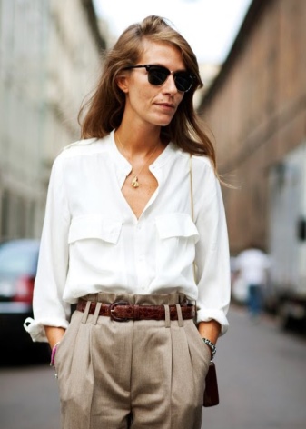 For kontoret er en bomulls-, lin- eller chiffongbluse god, noe som fremhever utseendet på en vakker figur, som er gjemt inni skjørtet.