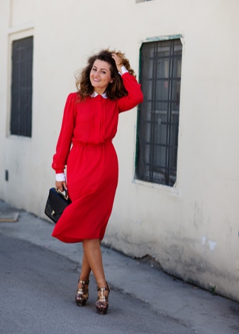 Spesielt populære er skjedekjoler av en rett silhuett, og når midten av kneet. Midjen er fremhevet av et lærbelte. Slike klær er laget i myke pastellfarger eller i svart og hvitt kombinasjon.