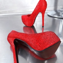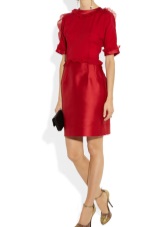 En rød kjole eller buksedress vil være flott å kombinere med sølv- eller gullsko, med blå eller grønne metalliske, skinnende svarte modeller. Du kan få ganske uvanlige kombinasjoner ved å eksperimentere med forskjellige farger på sko.
