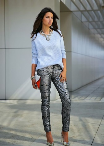 Hvite klær vil se bra ut med sølvsko, enten det er en kjole eller en buksedrakt. Vel, hvis du utfyller bildet med diskrete sølvsmykker.