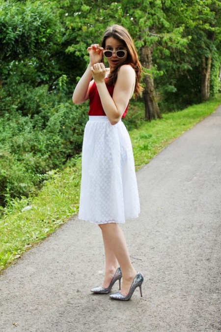 Skal du på date? Velg deretter en ermeløs skarlet topp, et hvitt luftig skjørt og sølvglitterpumper. Du vil se ut som en moderne Askepott, bildet vil vise seg å være ømt og lyst samtidig.