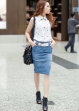 Hvis dette er et forretningsskjørt i streng stil med skjulte lommer, er en klassisk bluse eller skjorte best for det. Til hverdagsskjørt med lommer kan du bruke en turtleneck, topp, skjorte, bluse, t-skjorte eller t-skjorte. Det avhenger av stilen på selve skjørtet, så vel som på årstiden.