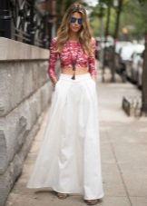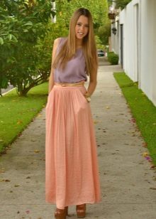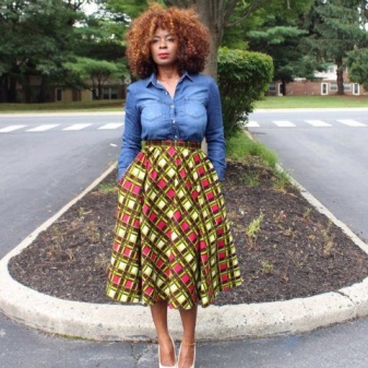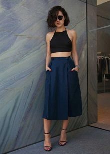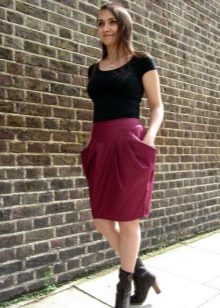 Toppen til skjørtet med lommer bør velges under hensyntagen til stilen og anledningen.